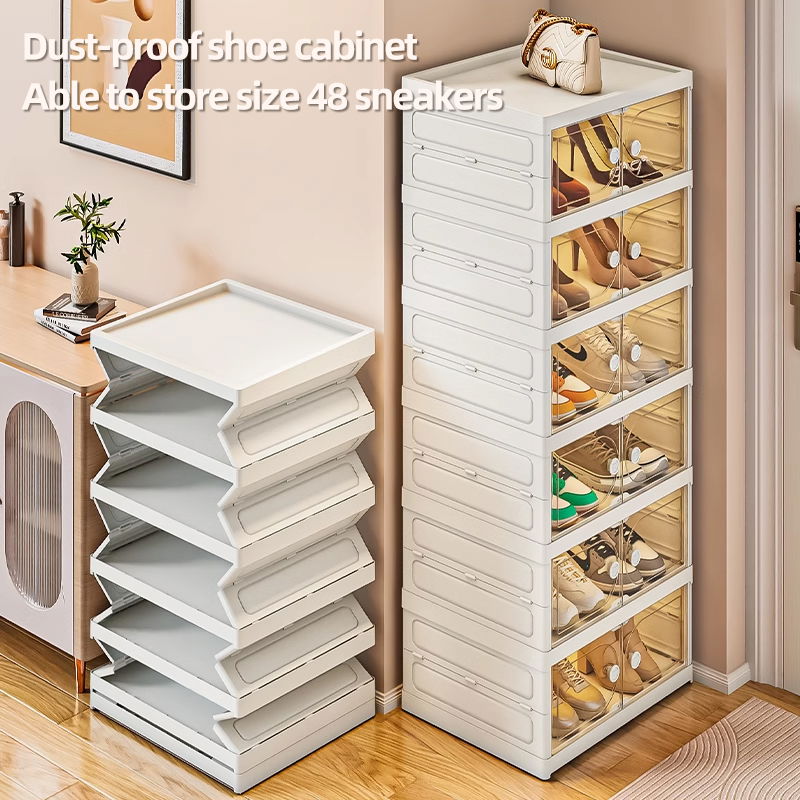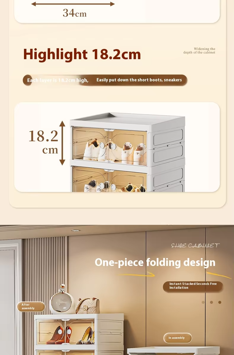 Dile adiós al caos de zapatos y a las complicadas instrucciones de armado. Este innovador gabinete de almacenamiento integrado llega listo para transformar tu hogar en segundos gracias a su avanzado sistema de plegado instantáneo.