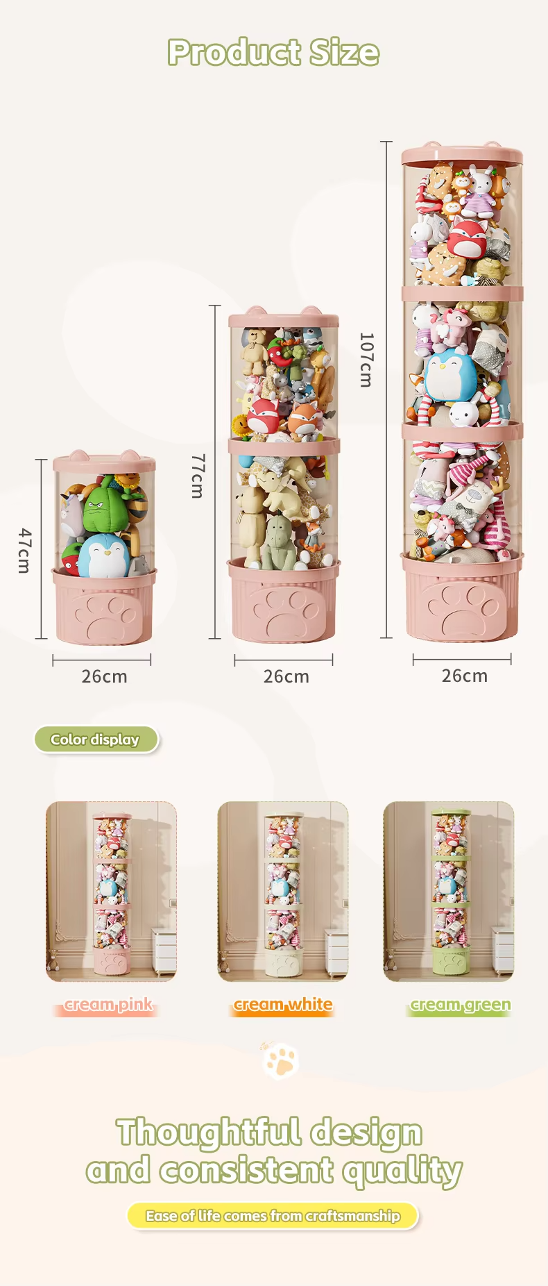 ¿Cansado de ver peluches tirados por toda la habitación? Nuestro cilindro organizador es la solución perfecta para mantener los juguetes ordenados, limpios y a la vista. Con más de un metro de altura, permite aprovechar el espacio vertical de forma eficiente y estética.