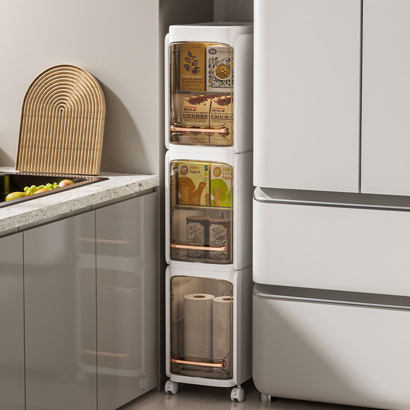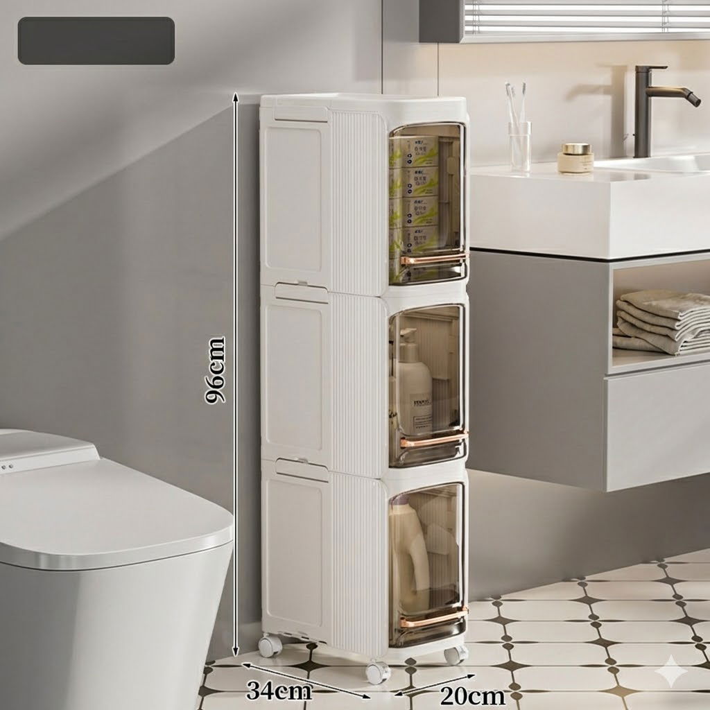 Este organizador tipo "crevice" (para ranuras o espacios estrechos) es la solución perfecta para esos lugares vacíos entre la heladera, el lavarropas o en baños pequeños. Su diseño delgado de solo 20 cm de ancho permite maximizar el almacenamiento donde otros muebles no caben.