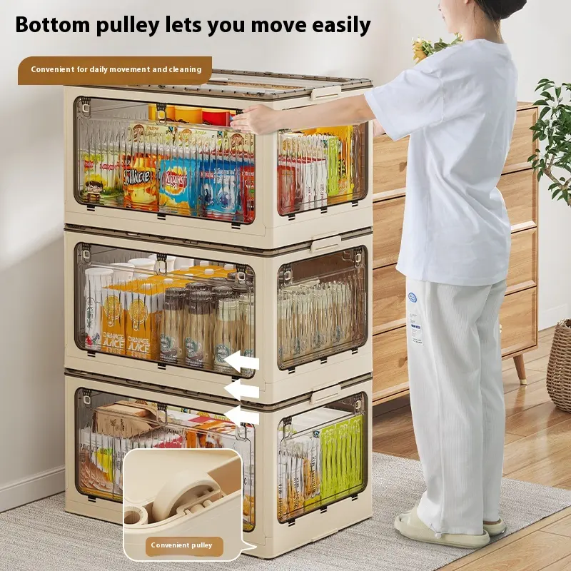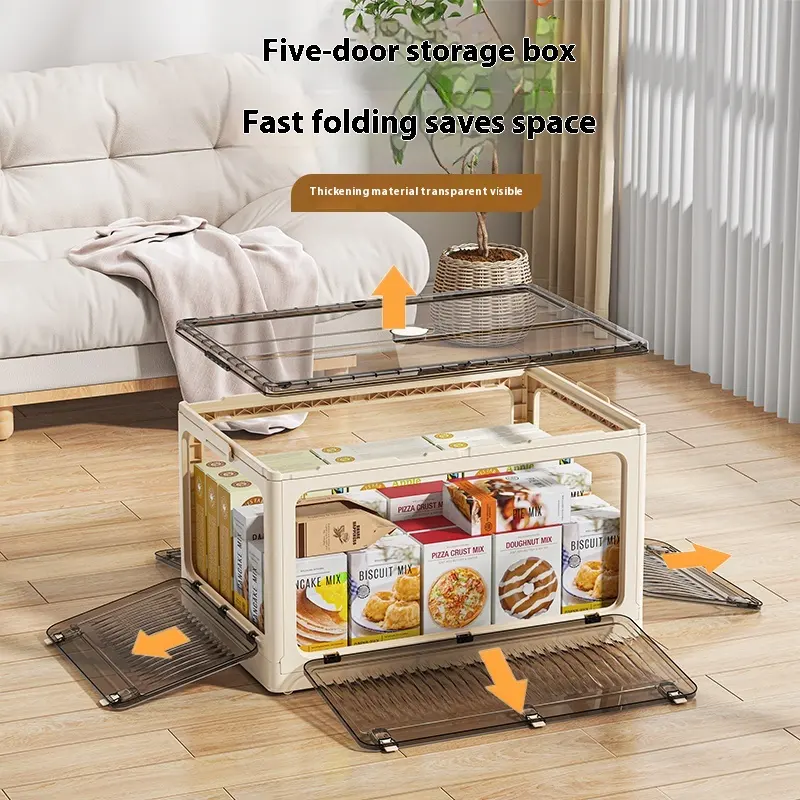 Acceso Total desde 5 Lados: Gracias a su innovador diseño de 5 puertas, puedes acceder a tus pertenencias desde la parte superior o desde cualquiera de los cuatro paneles laterales. ¡Ya no necesitas desapilar cajas para sacar lo que está al fondo!