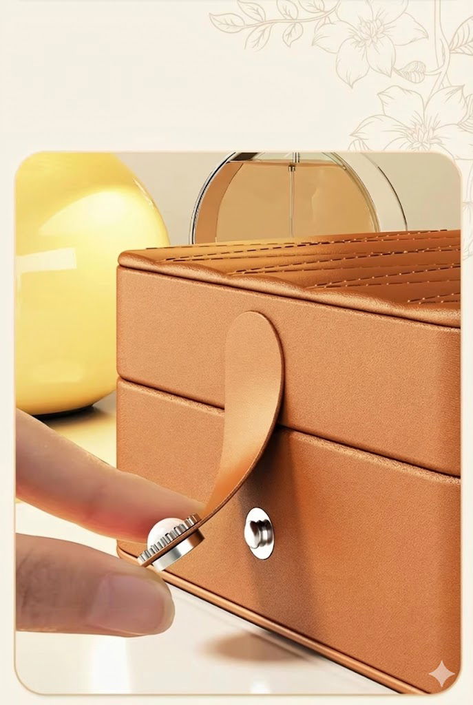 Cierre Seguro: Cuenta con un broche de presión resistente que mantiene el alhajero cerrado durante el movimiento.