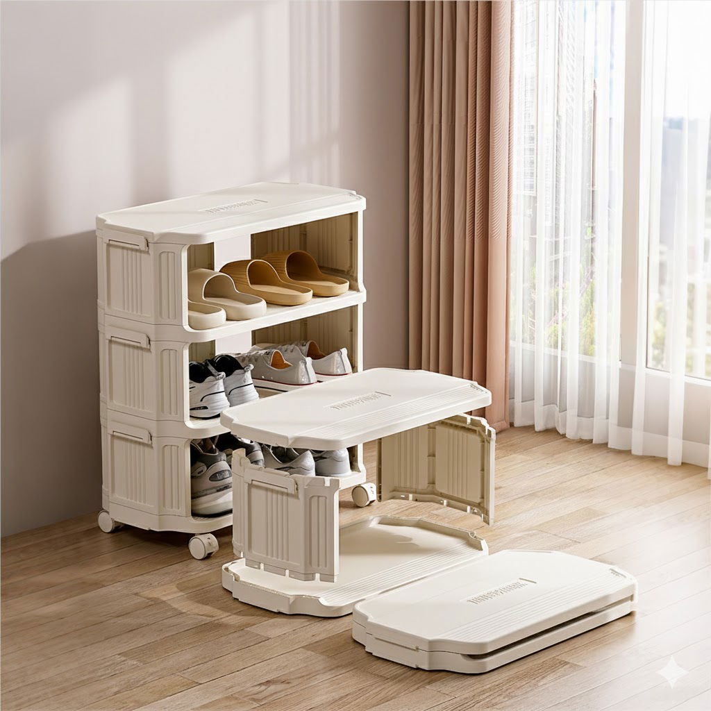 Versatilidad de Almacenamiento: Aunque es ideal para zapatos, su superficie superior plana es lo suficientemente resistente para colocar libros, decoración o artículos de uso diario.