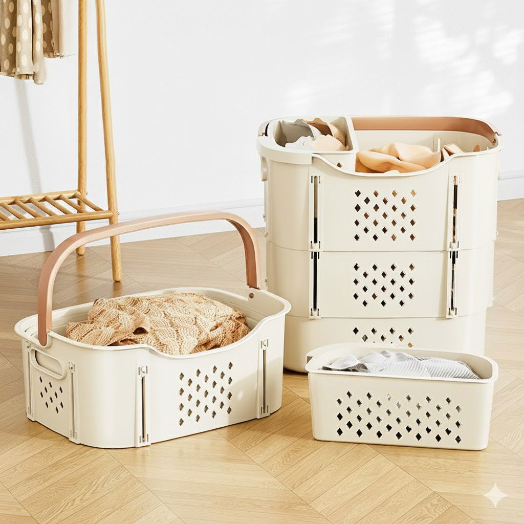 ¡La solución definitiva para organizar tu ropa con estilo y durabilidad! Este no es un canasto común; su diseño inteligente te permite clasificar tus prendas de manera higiénica mientras ahorrás espacio cuando no lo usás. Fabricado con materiales de alta calidad, es el aliado perfecto para el hogar moderno.