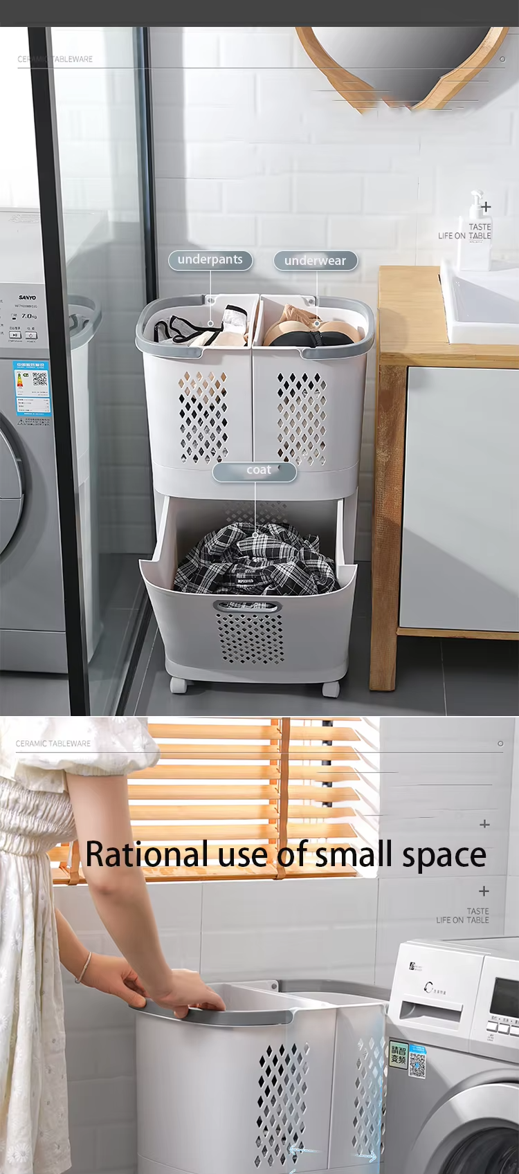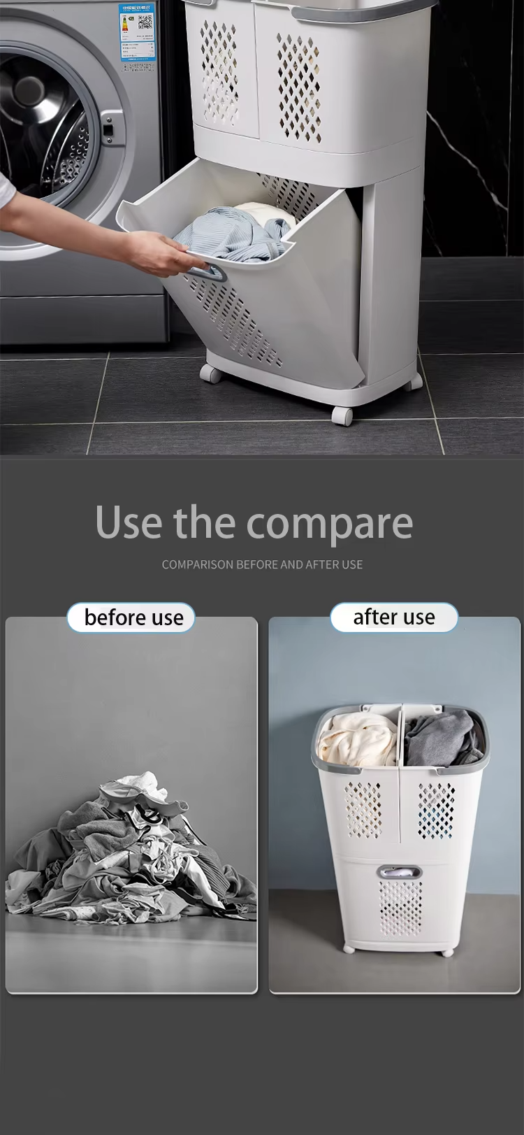 ¡Llevá la organización de tu hogar al siguiente nivel! Este cesto de diseño vertical es la solución definitiva para clasificar tu ropa de manera higiénica y sin esfuerzo. Gracias a sus dos niveles independientes, podés separar prendas blancas de color o ropa delicada de la diaria en un solo lugar.