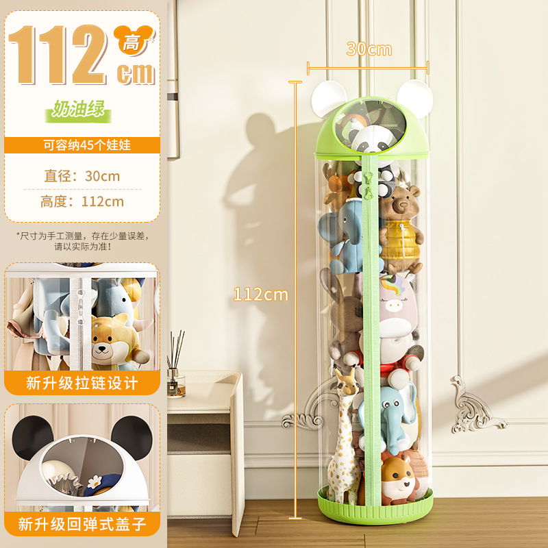 Gran Capacidad: Con una altura de 112 cm y 30 cm de diámetro, puede albergar hasta 45 muñecos medianos.