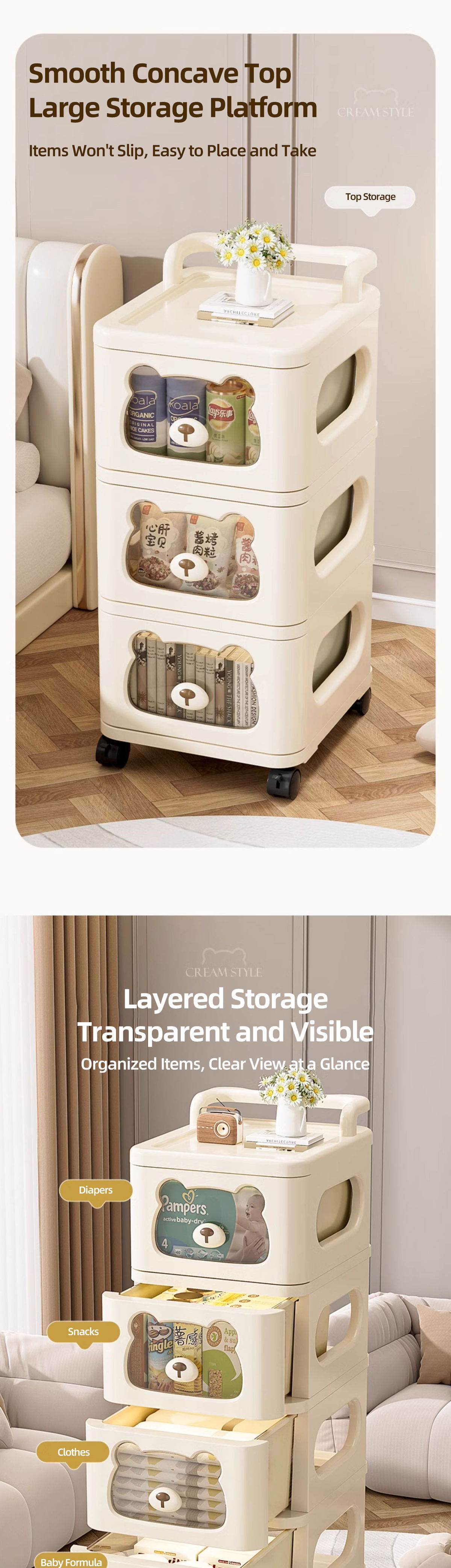 Diseño Inteligente: Ventanas frontales transparentes con forma de oso que permiten ver el contenido sin abrir el cajón.