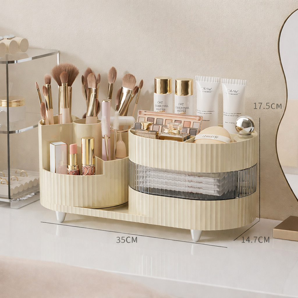 Diseño de Gran Capacidad: Un sistema integrado que permite el almacenamiento ordenado de cosméticos en múltiples secciones.