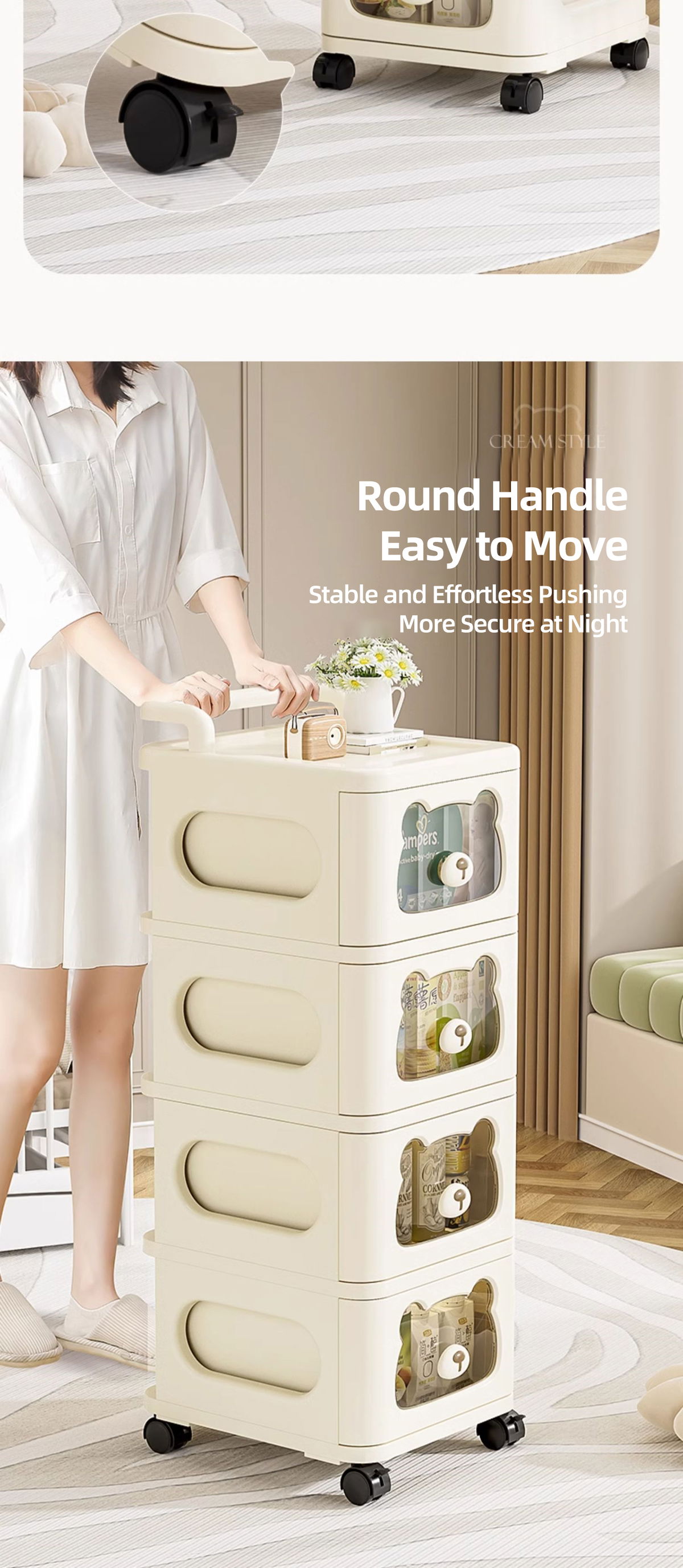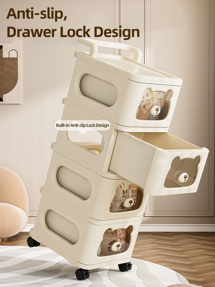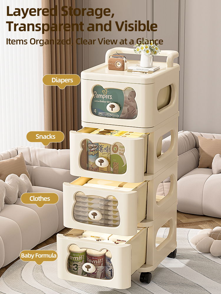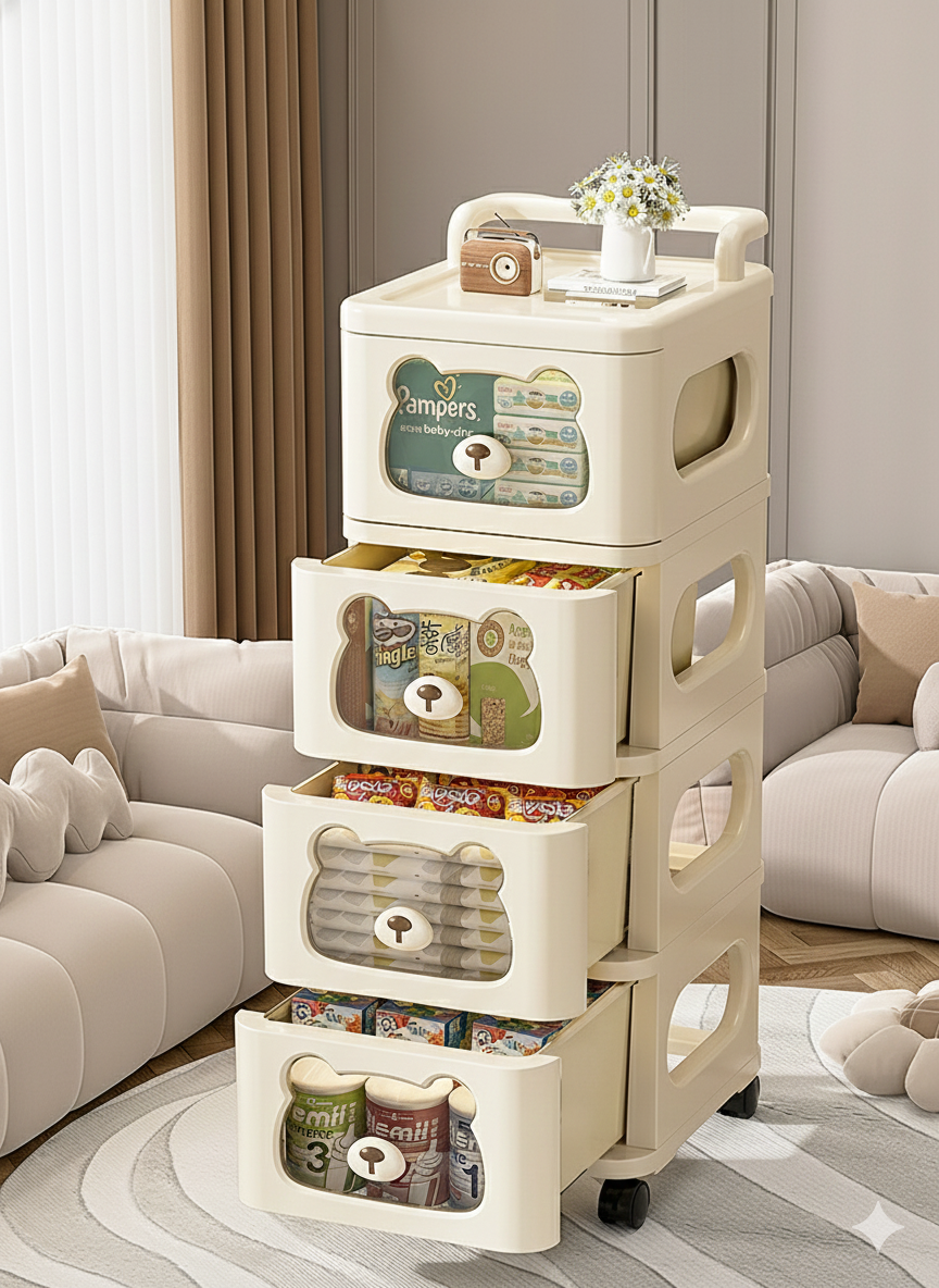 Diseño Inteligente: Ventanas frontales transparentes con forma de oso que permiten ver el contenido sin abrir el cajón.