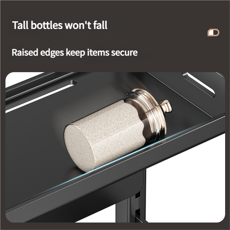 Seguridad Ante Todo: Cuenta con bordes elevados en cada estante para evitar que los frascos o botellas se deslicen o caigan.